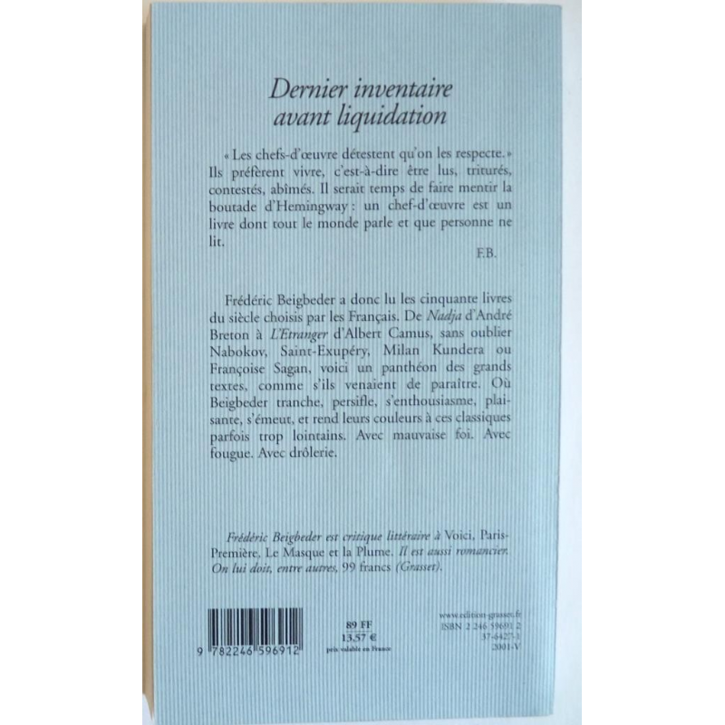 Dernier inventaire avant liquidation, par Frédéric BEIGBEDER