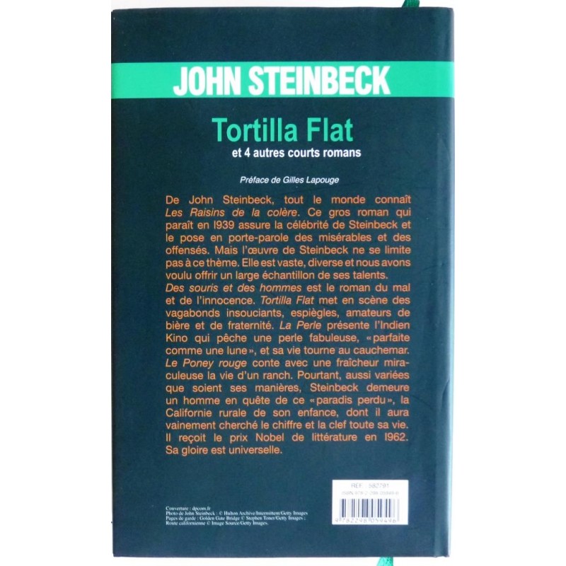| Titre | Tortilla Flat (et 4 autres courts romans) Contient : Tortilla Flat Des souris et des hommes Johnny l'ours Le poney rouge La perle. |